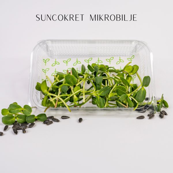 Mikrobilje suncokreta su mladi izdanci suncokreta, poznati po blago orašastom ukusu i sočnoj, hrskavoj teksturi, zbog čega su omiljeni dodatak salatama, sendvičima i smutijima. Bogato je hranljivim sastojcima, uključujući vitamine A, B, C, D i E, kao i minerale poput kalcijuma, magnezijuma i cinka. Mikrobilje suncokreta takođe sadrži visok nivo proteina i antioksidanata, što podržava imunološki sistem, energiju i zdravlje kostiju.